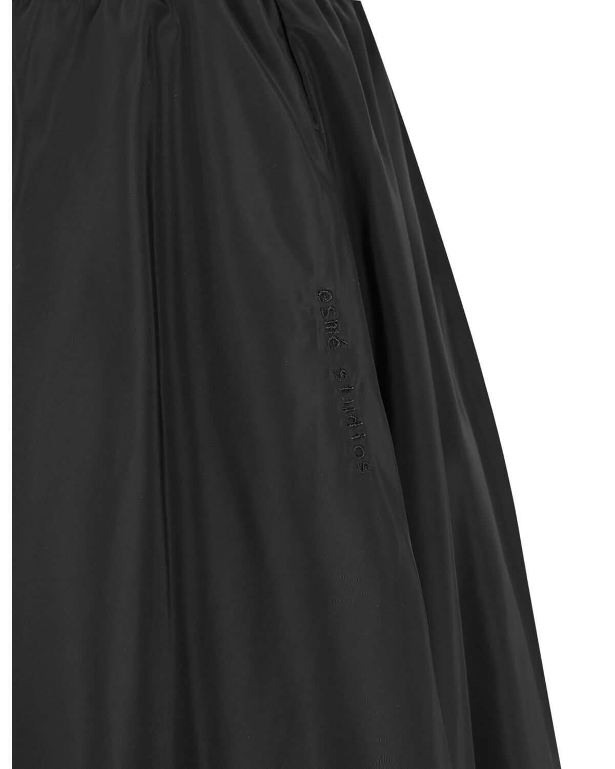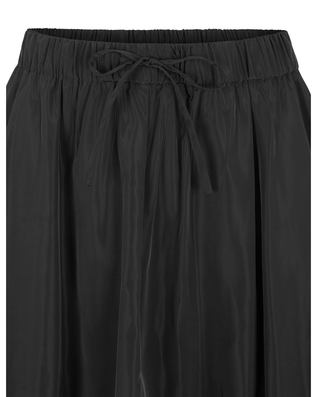 This balloon skirt features an elastic waist with a drawstring for a comfortable fit. With a side seam pocket and a midi length, it combines style and practicality effortlessly.