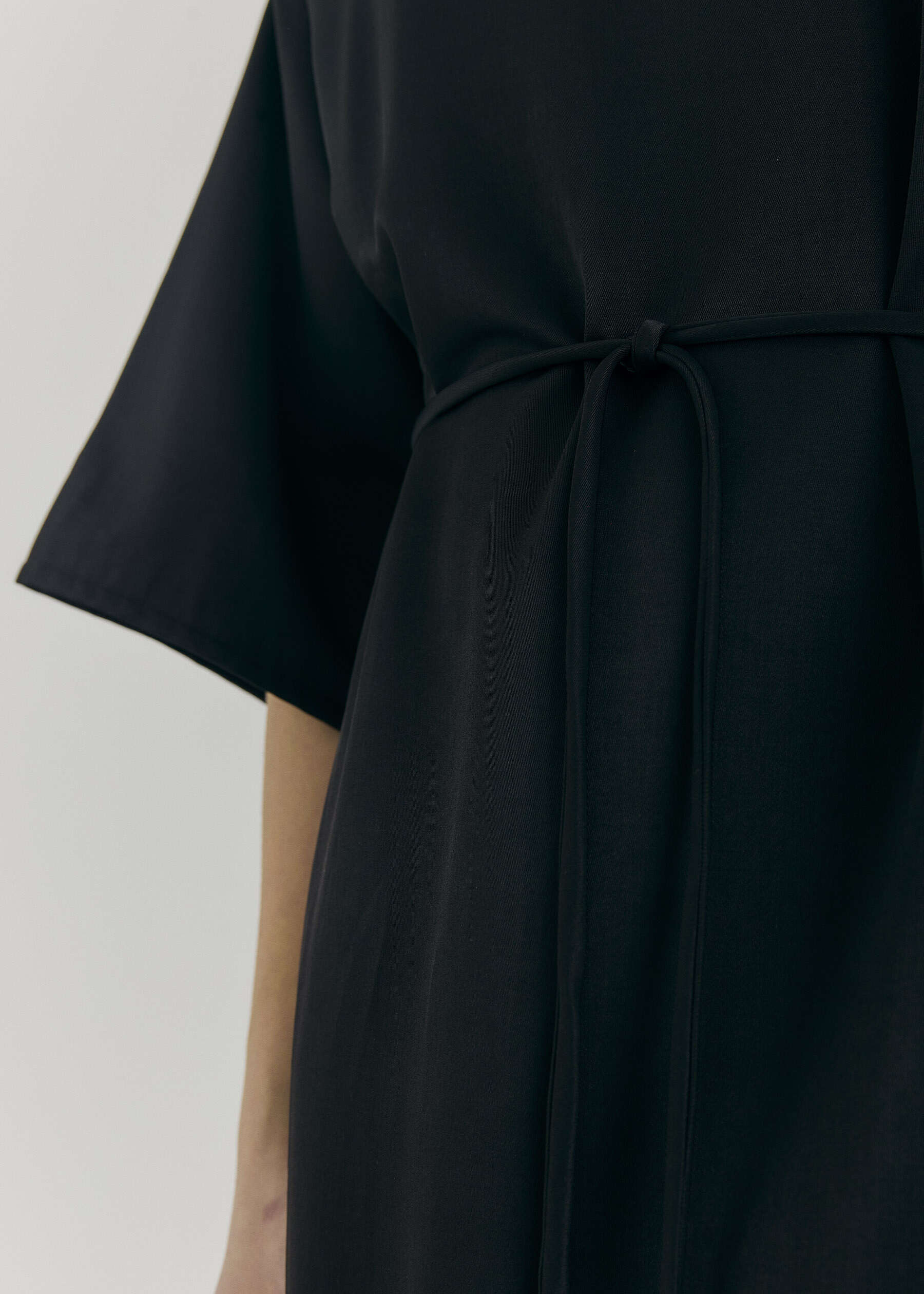 This relaxed t-shirt dress blends comfort with contemporary style. Featuring a sheer mesh panel at the hem, it creates a layered look that balances understated elegance with a subtle edge. Finished with delicate fringing along the bottom, the dress offers a modern yet effortless silhouette perfect for everyday wear.