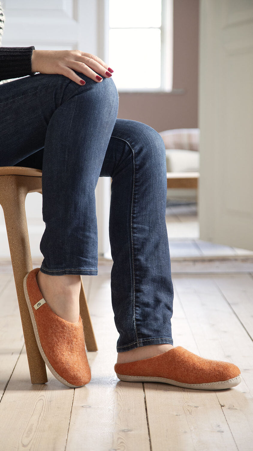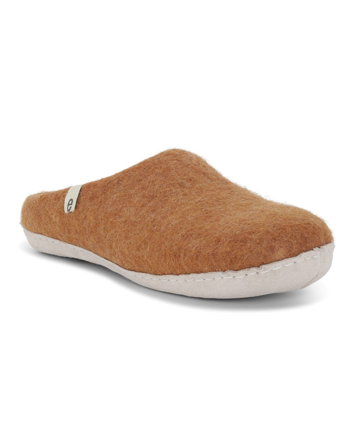 These chestnut slippers are expertly crafted from natural sheep’s wool, providing an ideal indoor footwear solution. Wool’s natural breathability ensures your feet remain comfortably warm without overheating. The slippers feature a double felt sole, enhancing comfort and durability for all-day wear. Perfectly balanced for temperature regulation and softness, they offer a refined combination of practicality and cozy luxury.