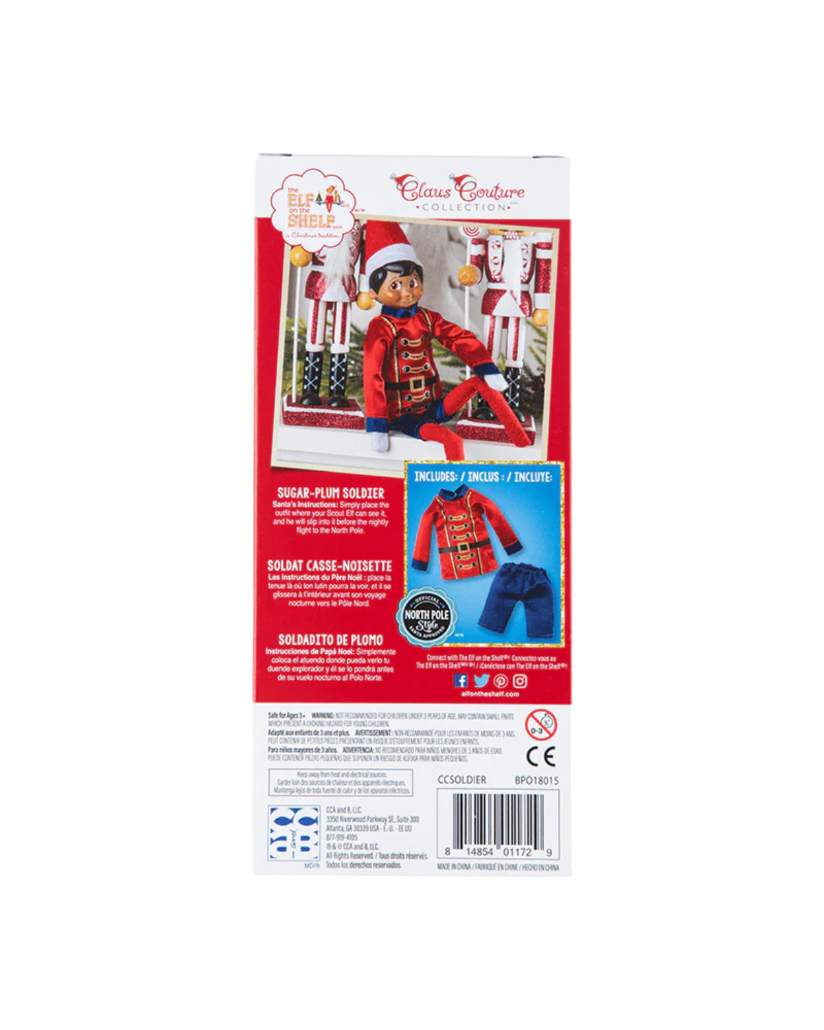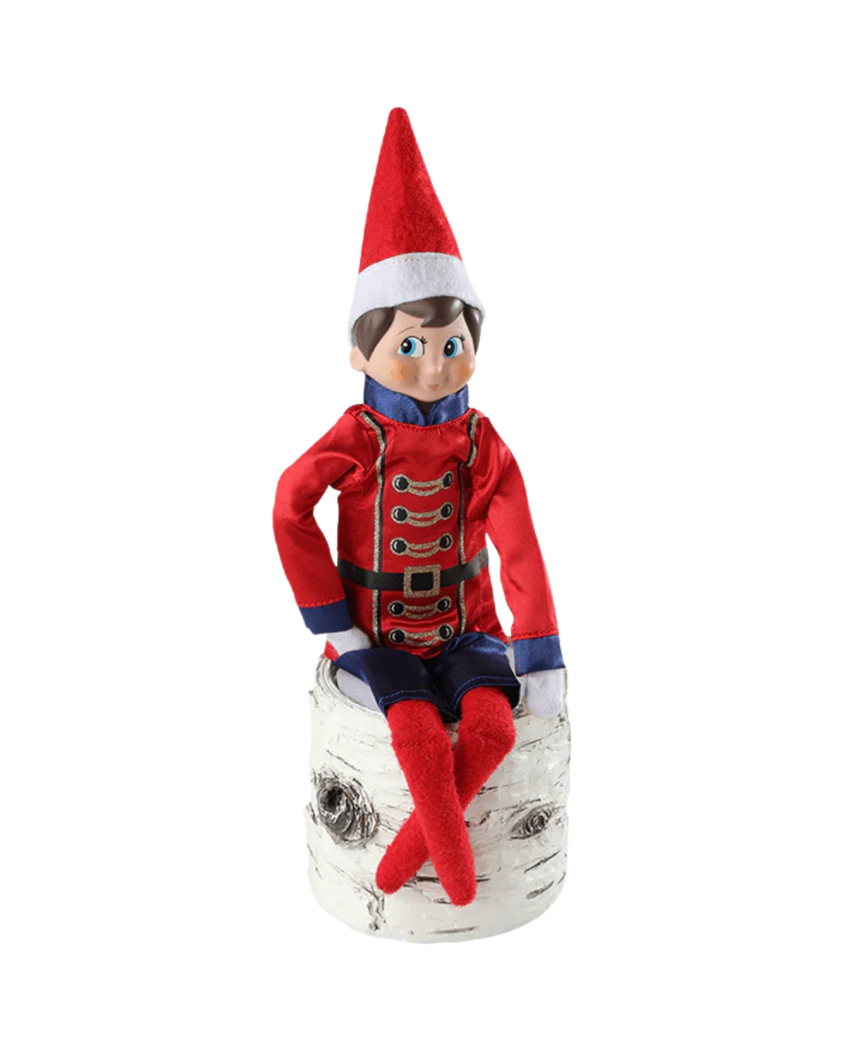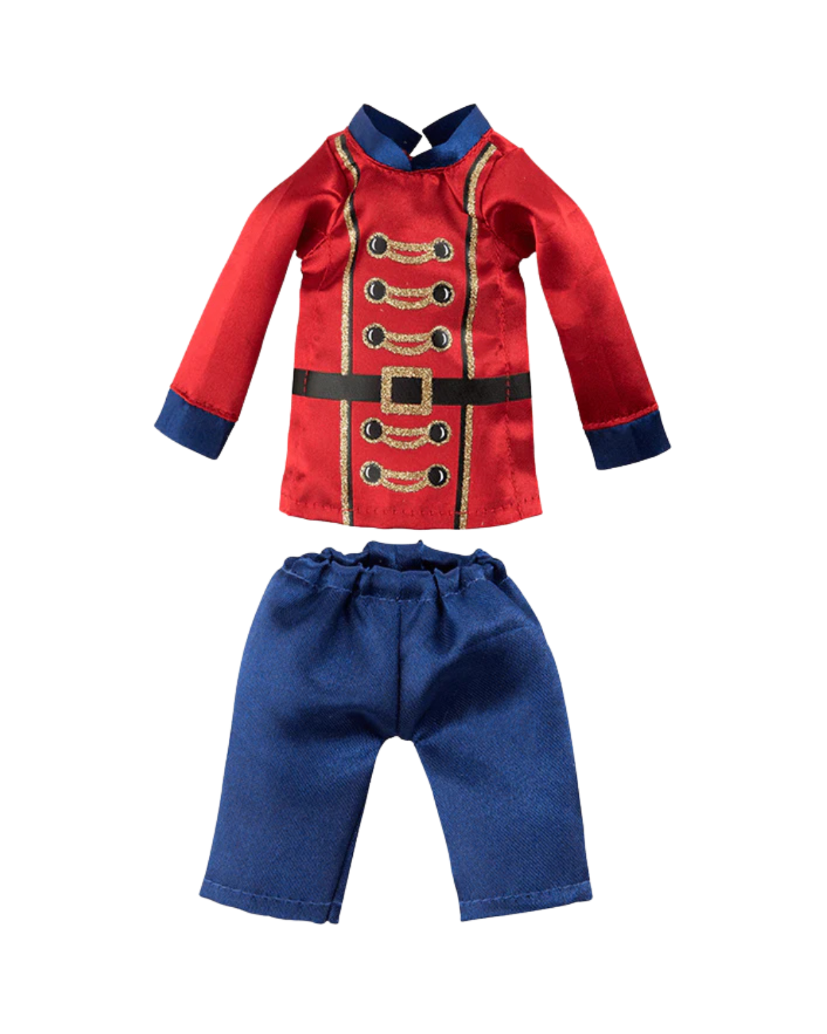Your Scout Elf can strike the perfect pose in a nutcracker-themed elf outfit that echoes time-honored decorating tradition. Includes Classic nutcracker red tunic; Gold-embellished black buttons and belt; and Royal blue shorts. Santa's Instructions: Simply place the Claus Couture Collection elf clothing where your Scout Elf can see it, and he will put it on before his nightly flight to the North Pole.