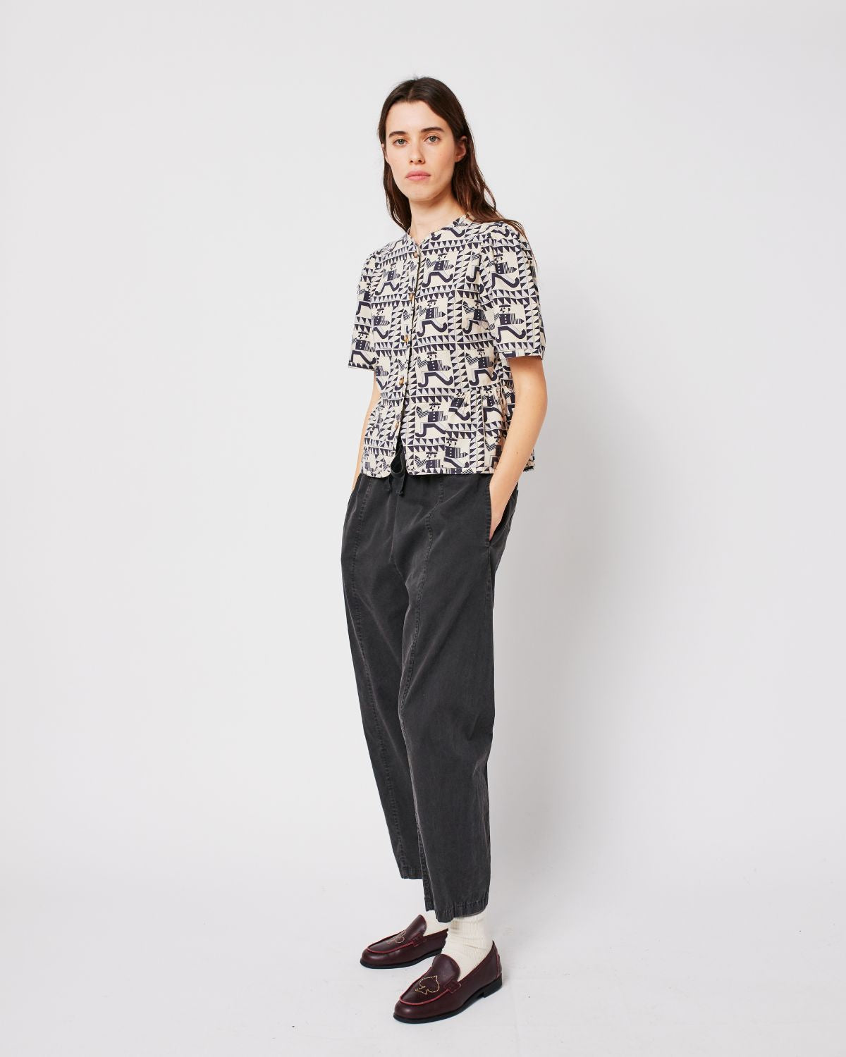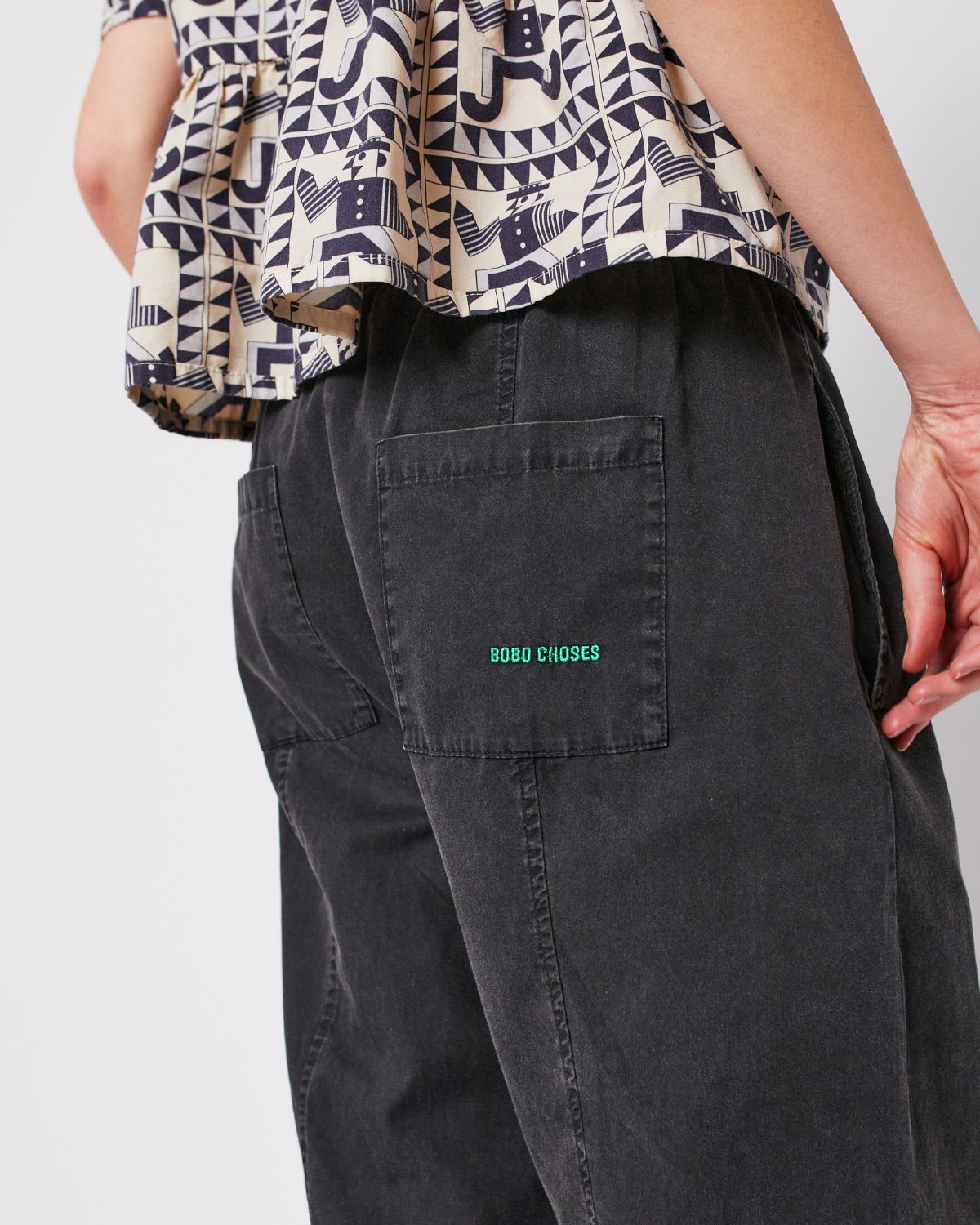 Dark heather grey pants. Designed with cropped length, mid-rise, slouchy / cocoon, elasticated at the waist for a flexible fit and non stretchy fabric. Fits true to size, take your normal size.