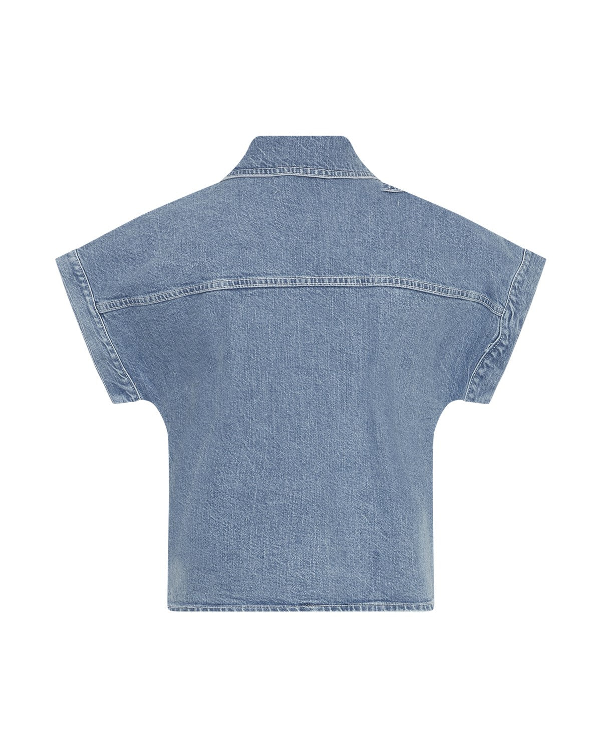 Elida Ada is our favourite denim quality, it's a high quality cotton with a bit of elastane, to ensure high comfort. This shirt is a new adaptation of a classic denim jacket, but made into an everyday shirt instead. It can both be used a shirt or as a vest on top of a t-shirt. The shirt features a short sleeve, front pocket, button closure and cutline details all around.