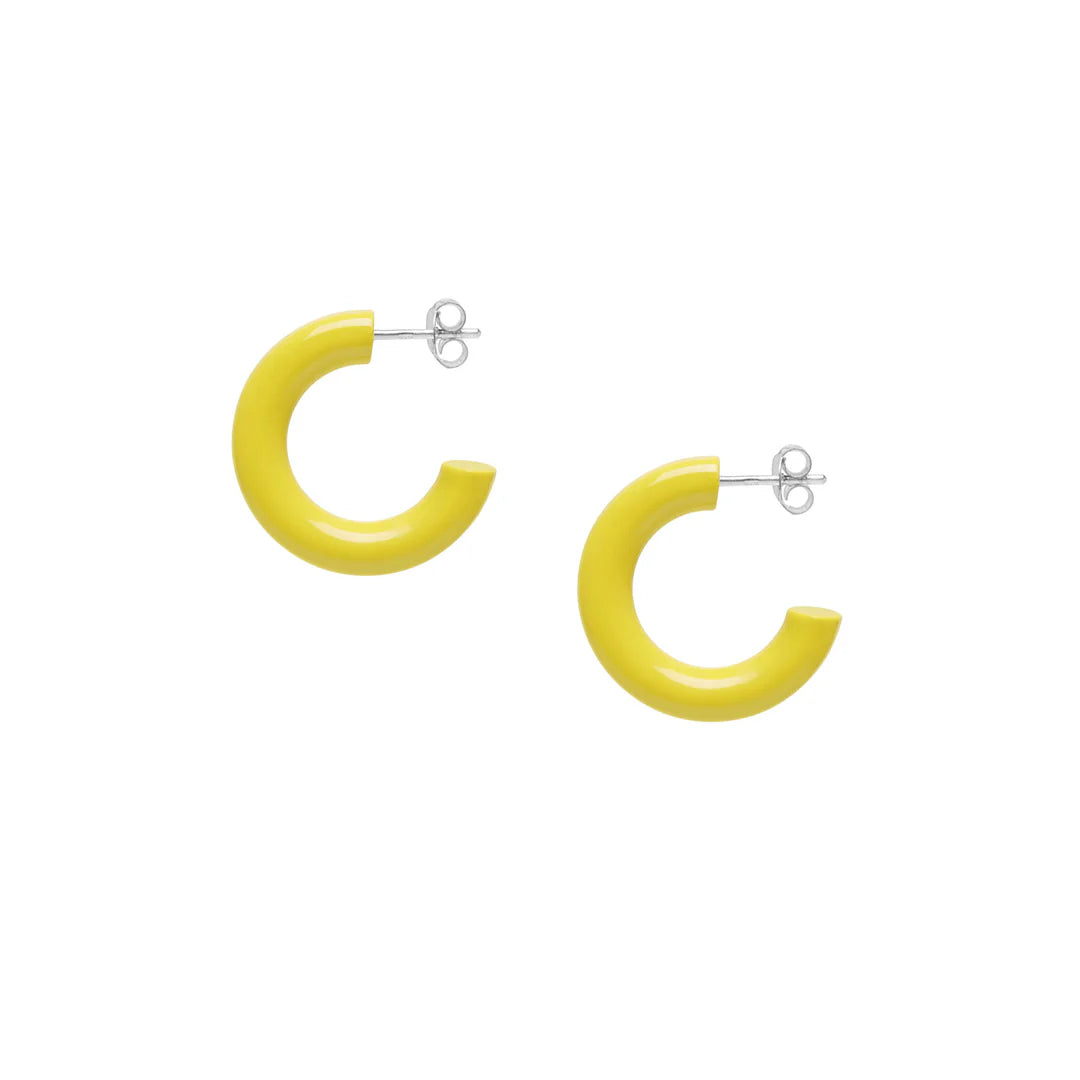 These small chartreuse huggie hoop earrings from Branch are the smallest hoop earrings in the collection. Handmade to the highest quality and super lightweight so honestly, you won't feel you're wearing them.