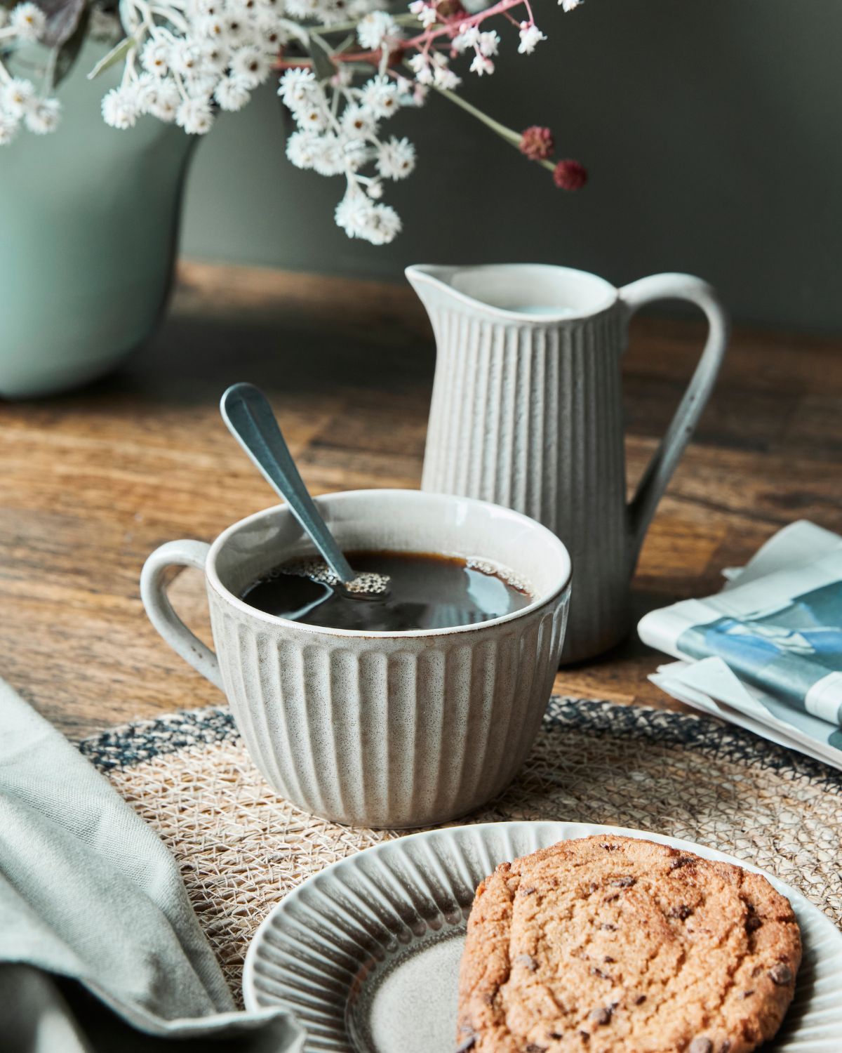 A good cup of tea deserves the right mug. This design from House Doctor is equally suitable for your everyday morning tea and the causal afternoon break. Its ribbed design comes together with a matt outer and a glossy inner to give your table setting the right amount of style and elegance. As opposed to a coffee mug, a traditional tea cup like this one is wider to cool the tea faster. And that is why you need both kinds in your cupboard.