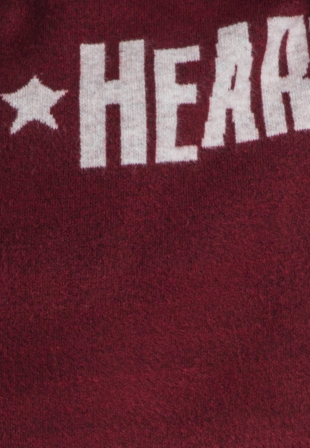 The Hatty Jumper is a must-have for your winter wardrobe. This hip-length wool mix jumper is not just soft and warm but also makes a bold statement with its eye-catching Wild at heart slogan design in dark red and dusty pink. With long sleeves and an oversized fit, it offers both comfort and style. The classic crew neck adds a touch of versatility, making it the perfect choice to pair with your favourite jeans or leggings for a casual yet fashionable look. The Hatty Jumper is the ideal addition to your collection for standing out and staying cozy this season.