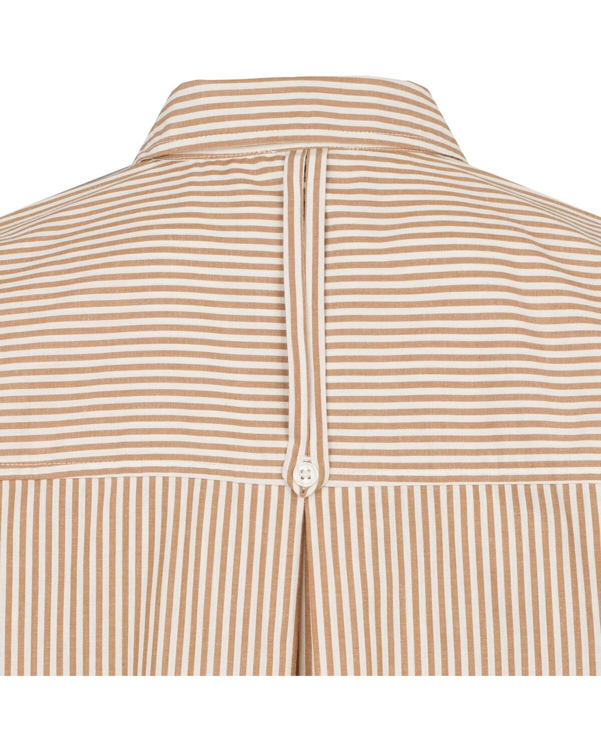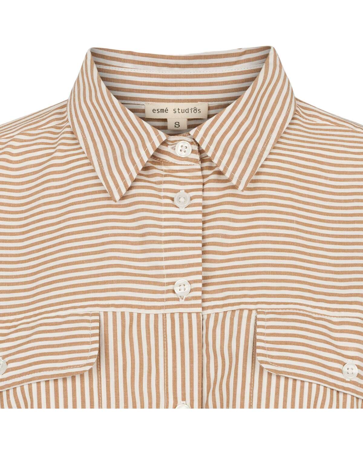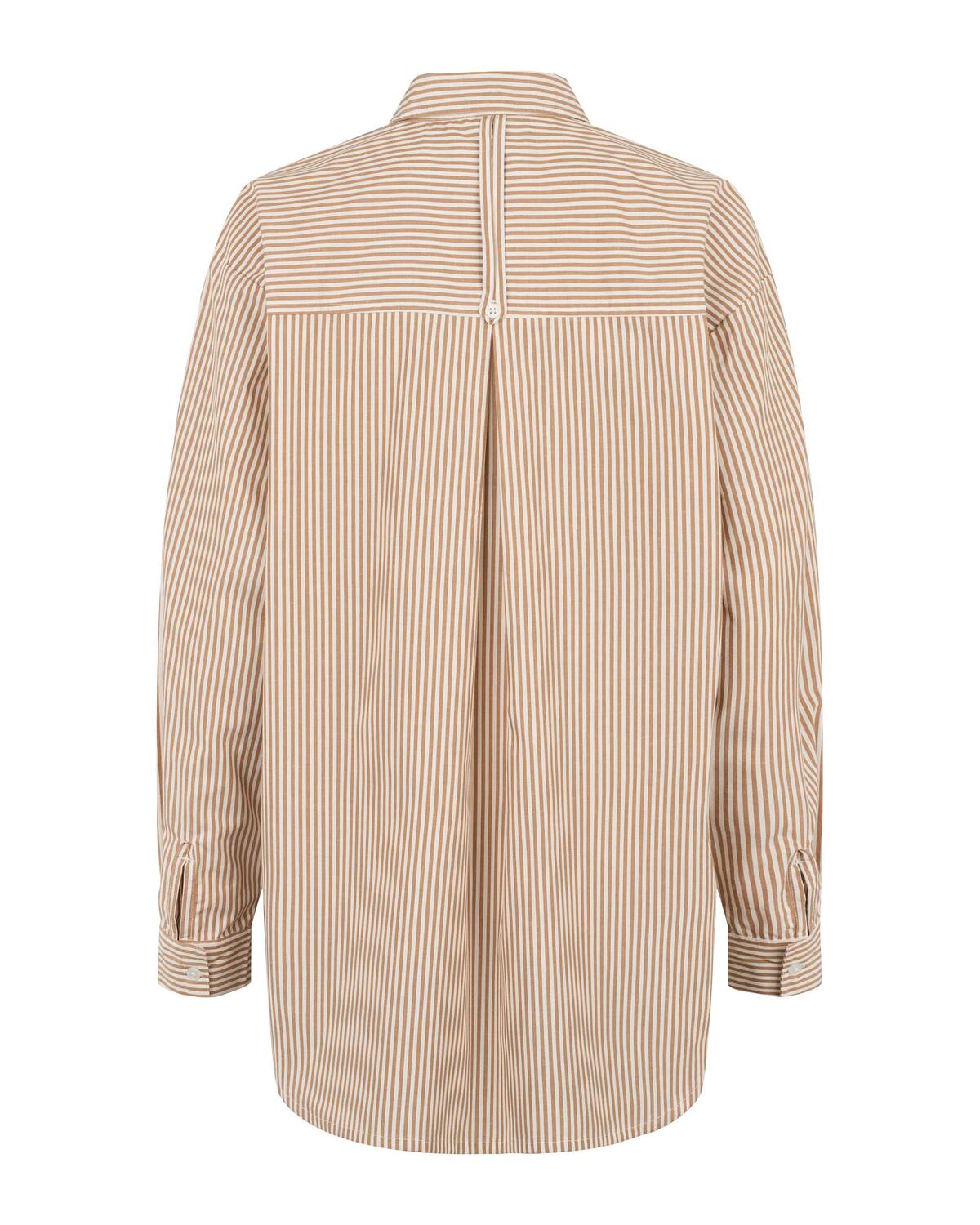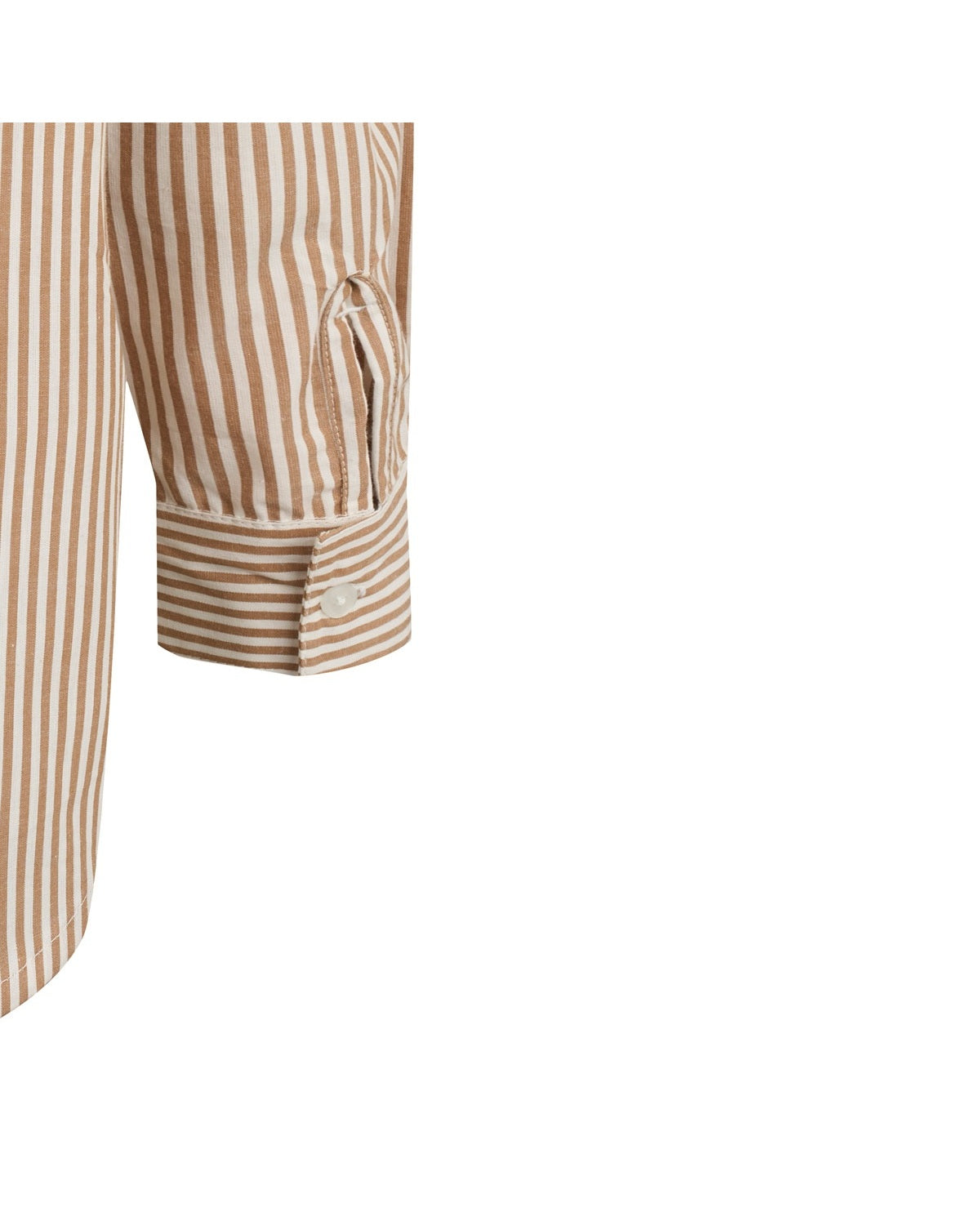 This long-sleeve shirt features a subtle brown stripe pattern and a practical chest pocket, combining simplicity with functionality. Crafted for a relaxed yet refined look, it pairs effortlessly with both casual and smart outfits. The clean lines and muted tones embody minimalist Scandinavian style, making it a versatile wardrobe staple.