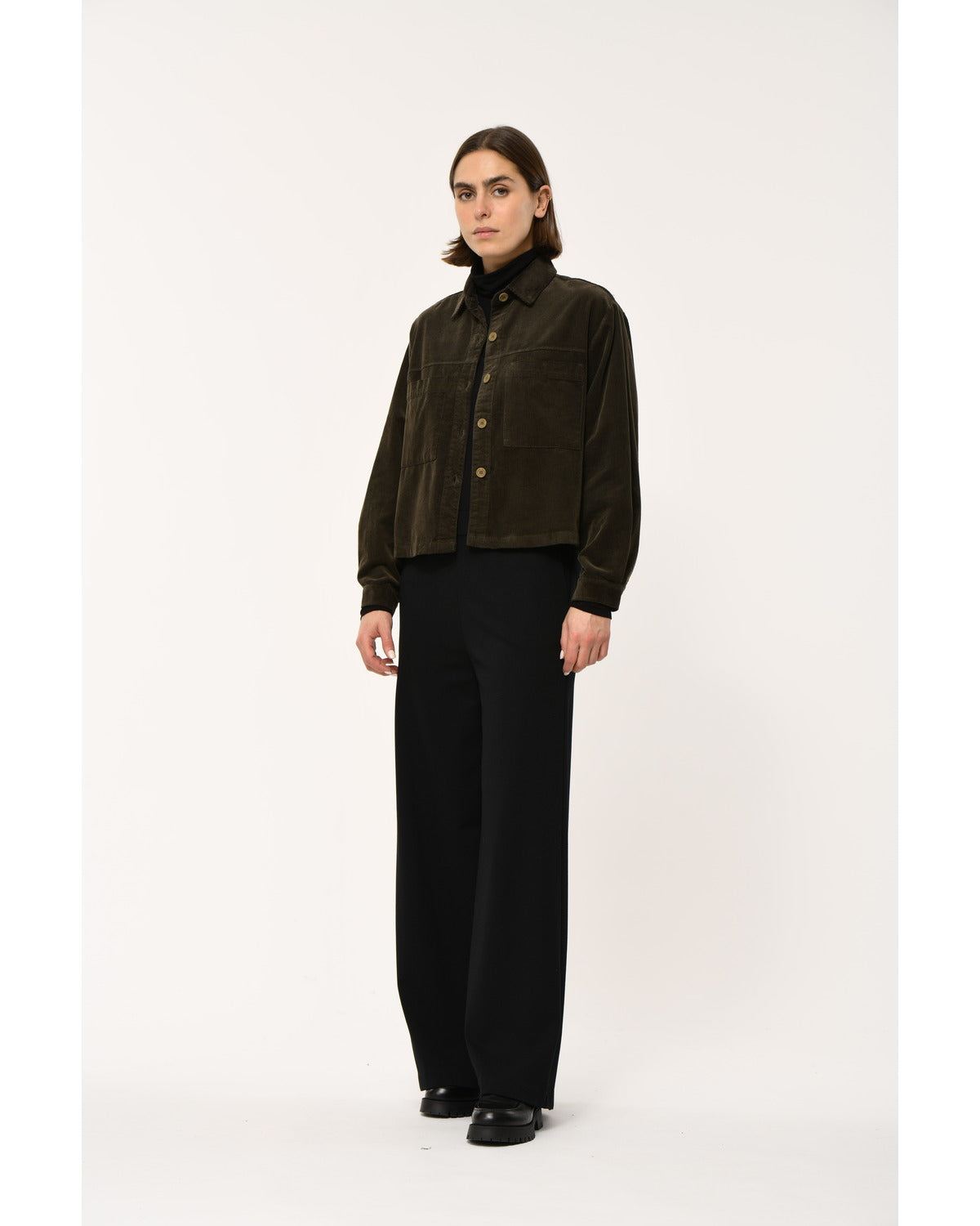 This short chocolate corduroy jacket combines refined texture with a tailored fit, offering a sophisticated addition to your wardrobe. Its rich color and plush fabric provide warmth while maintaining an elegant silhouette, perfect for elevating both casual and formal ensembles.