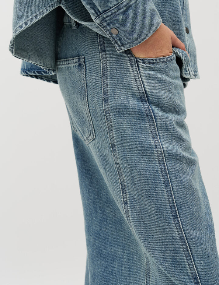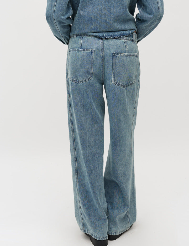 Effortless silhouette meets everyday comfort in these wide-leg jeans. The soft blue wash brings a relaxed, lived-in quality to your wardrobe—versatile enough for casual weekends or dressed up with minimal effort. Cut with a generous leg that skims rather than clings, they're designed for movement and ease. A timeless piece that works as hard as you do.