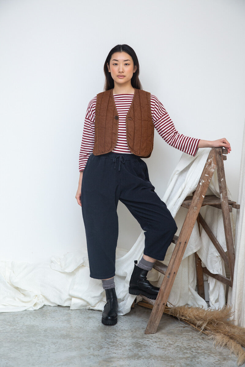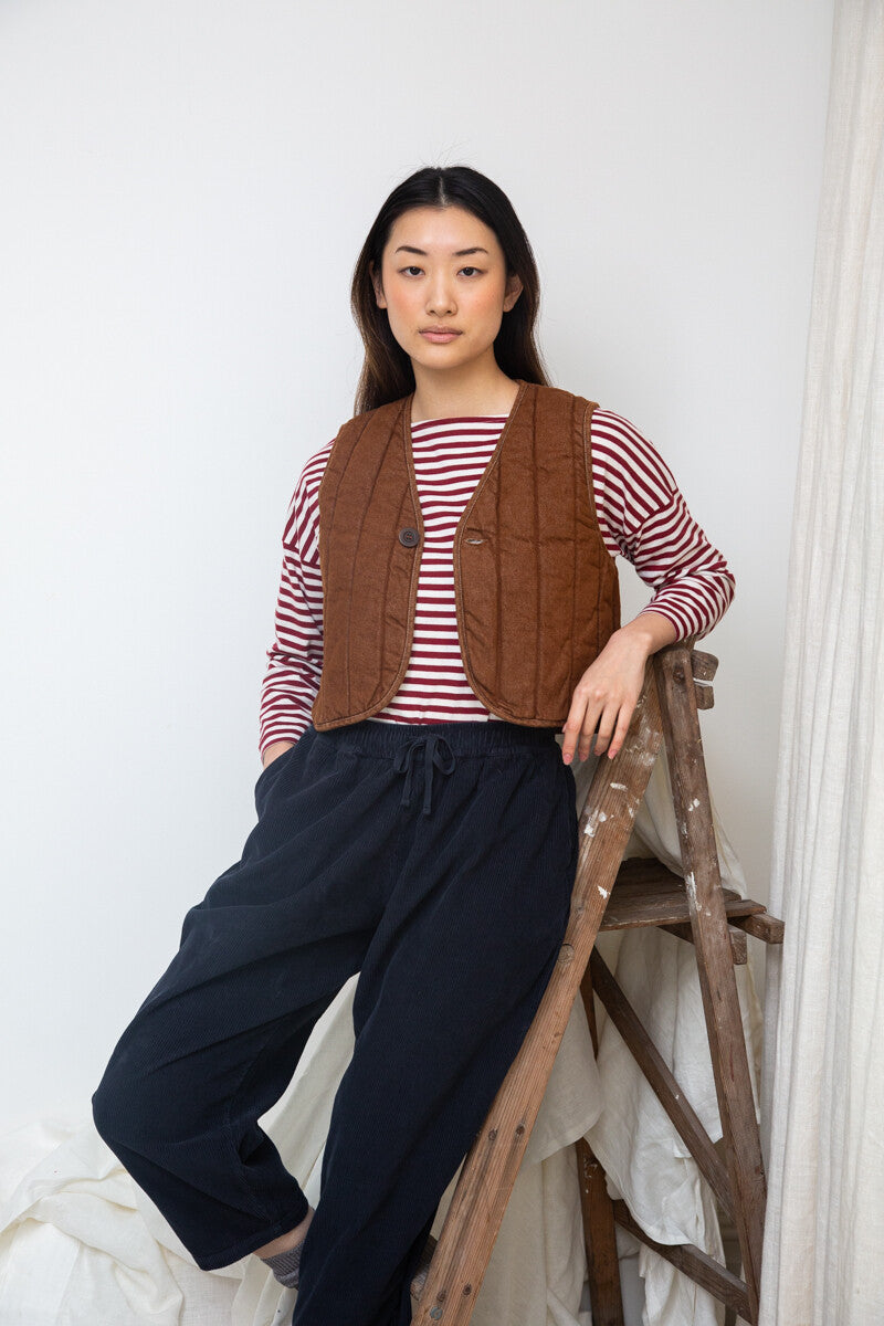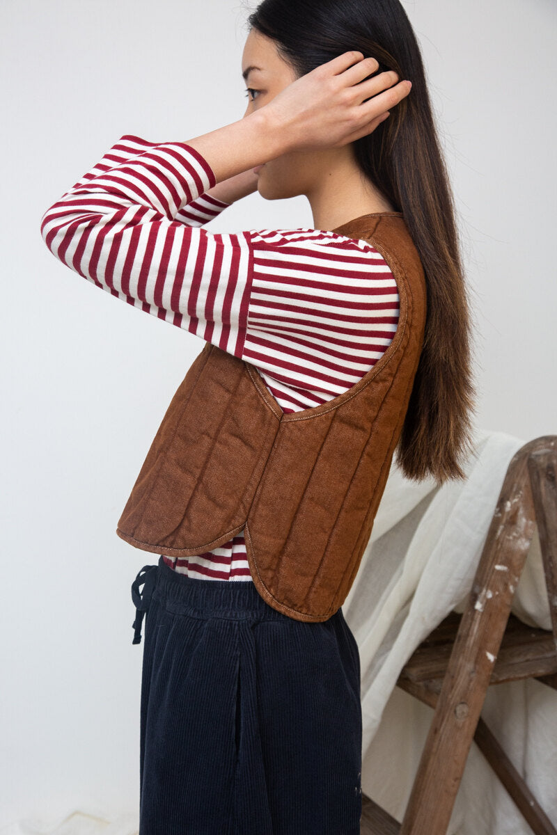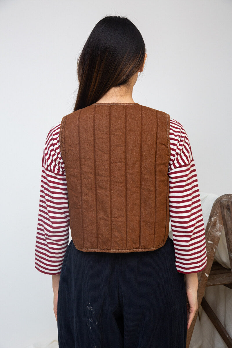 LARK-LEIGH BARK BROWN COTTON DENIM GILLET
