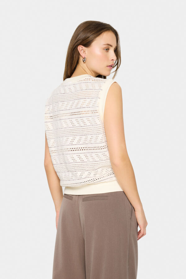 This creme crochet vest offers a relaxed, stylish layer perfect for casual days. Its soft texture and intricate crochet design add a cozy, handmade feel to any outfit, making it a versatile piece for your wardrobe.