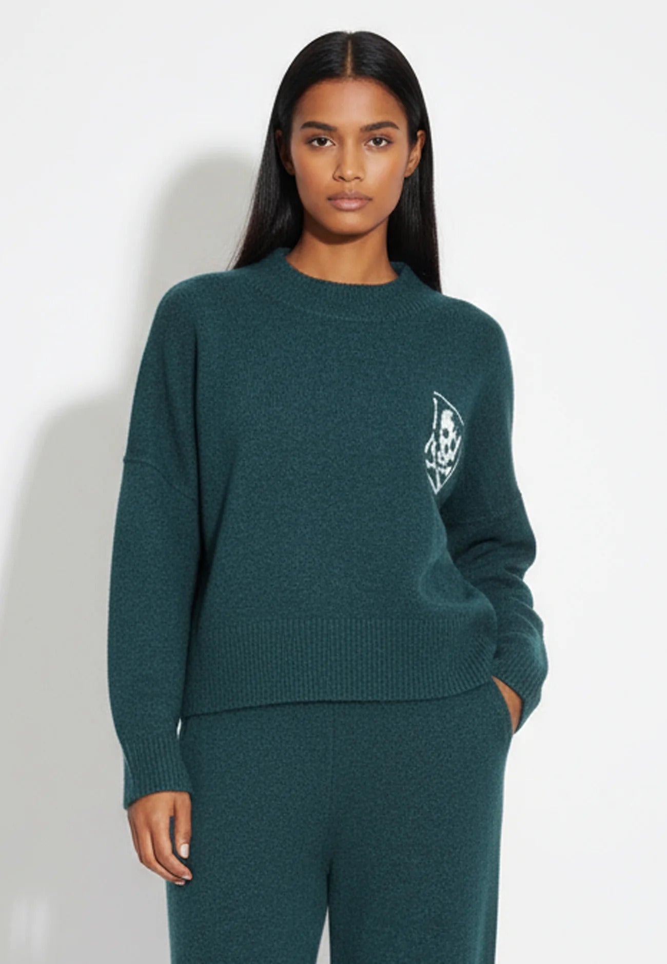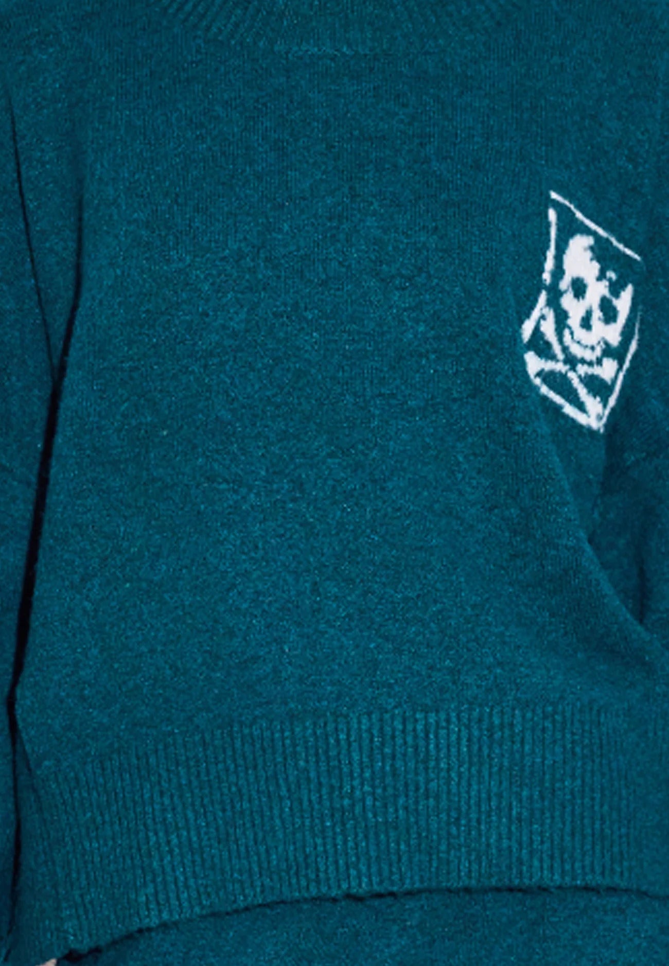 Religion's stylish Luscious jumper in dark green is made from a soft wool mix yarn which ensures ultimate comfort and warmth. The skull and bones jacquard on the chest adds a touch of interest, while the seam detailing adds a refined element to the design.