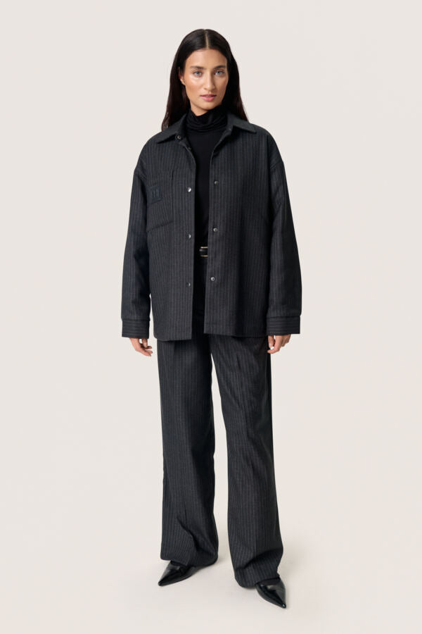 This grey melange pinstripe jacket offers a clean, minimalist design with subtle detailing, perfect for a modern, understated look. Crafted to provide a comfortable fit, its fine pinstripe pattern adds just the right touch of texture without overwhelming. Ideal for layering or wearing solo, it pairs effortlessly with both casual and smart outfits, reflecting Scandi style’s simplicity and functionality.