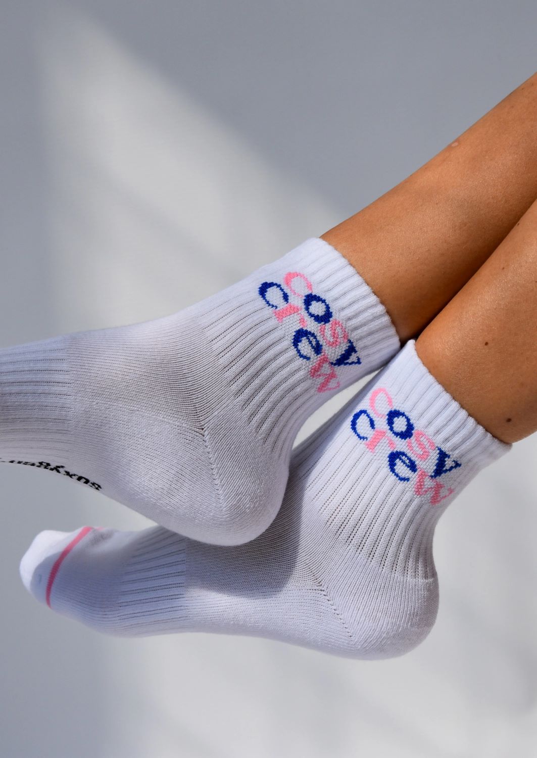 Summer bright ribbed crew socks, with COSY CREW slogan detail, hit just above the ankle. With arch support and a cushioned heel and toe, Soxygen socks take comfort to another level. Elasticated stretch. One size fits all.