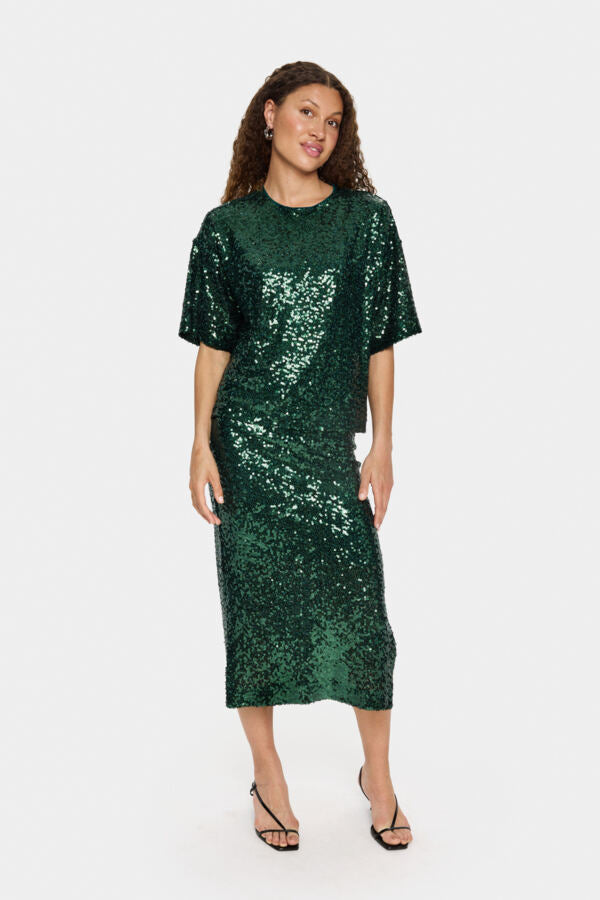 Effortless elegance meets playful sparkle with the MYRA BLOUSE in June Bug green. This minimalist-inspired piece features shimmering sequin detailing that catches the light beautifully, making it perfect for elevating everyday wear or creating an understated statement look. The clean lines and thoughtful design embody Scandinavian simplicity, while the sequin embellishment adds just enough personality. Versatile enough to dress up or down, this blouse transitions seamlessly from day to evening.