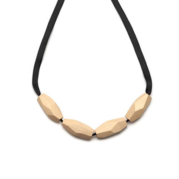 Four whitewood beads have been carved by hand by expert makers and finished to the highest quality. Set on a black Grosgrain ribbon which means that you can wear this necklace at any length you like, so you can achieve the perfect look with this very cool and versatile piece