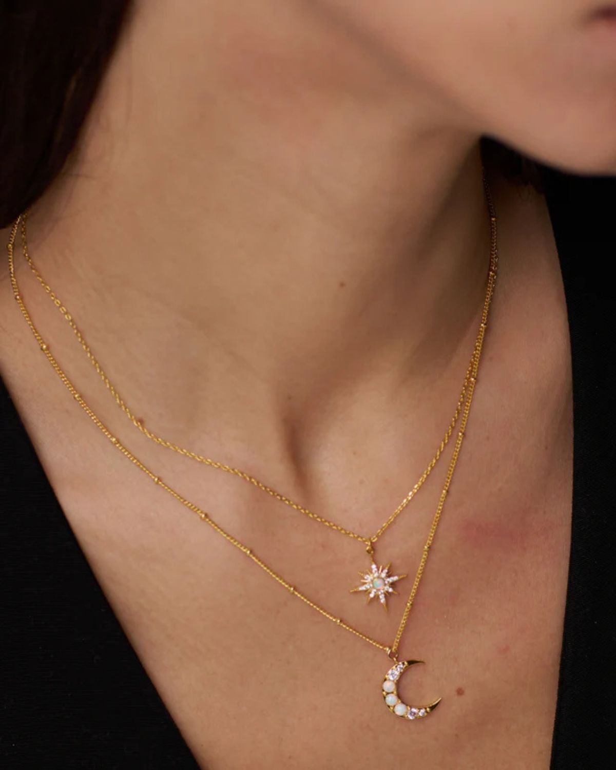 OPAL STARBURST CHARM NECKLACE GOLD