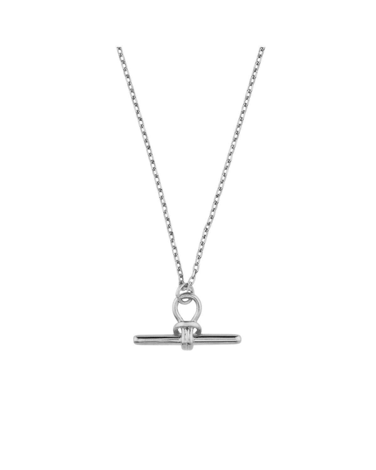 This Dainty T-Bar Knot Necklace features a classic silver chain holding the cult favourite t-bar charm with knot detailing.