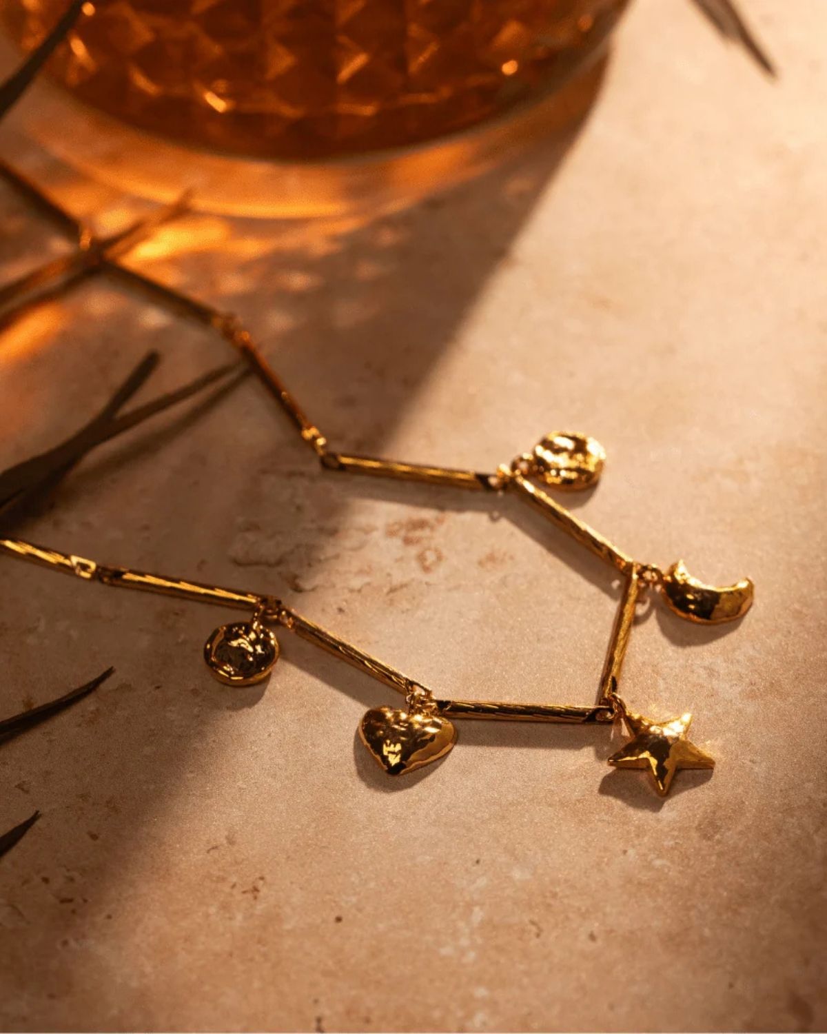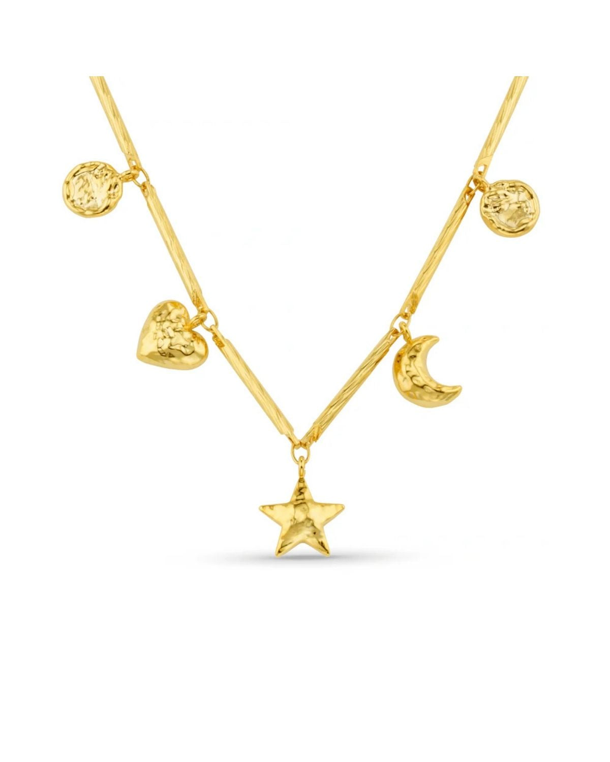 Full of charm and personality, The Bar Link & Molten Charm Necklace combines sleek bar-style links with molten-inspired coin charms for a bold yet refined look.