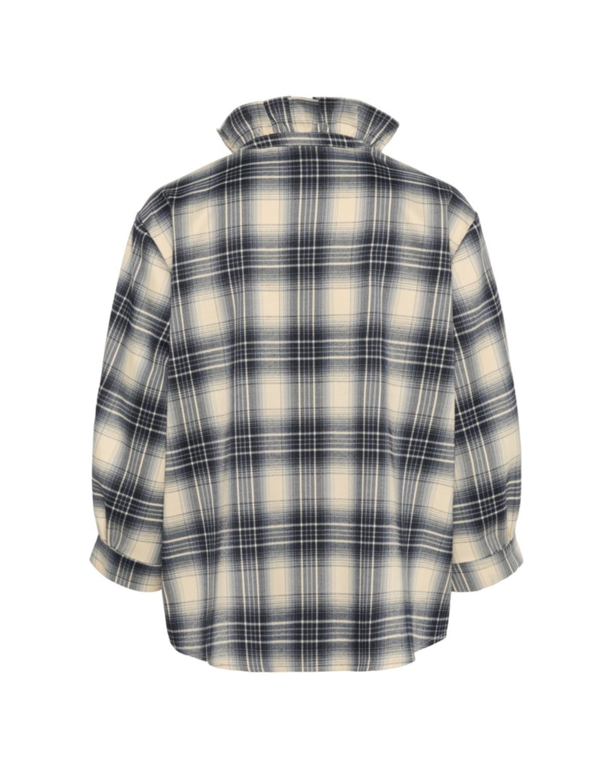 Embrace understated elegance with the Pamala Blouse in navy checks. Crafted with a subtle frill detail, this blouse adds a refined touch to your everyday wardrobe. Its classic check pattern and relaxed fit offer effortless versatility, perfect for layering or wearing alone. Ideal for those who appreciate clean lines and timeless style with a gentle feminine edge.