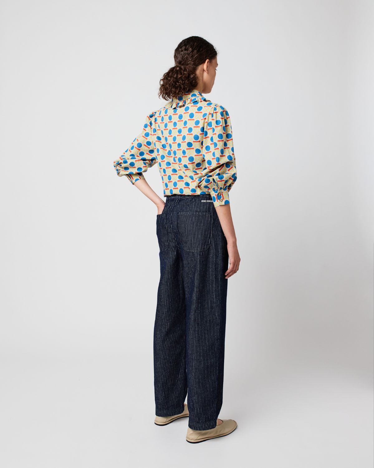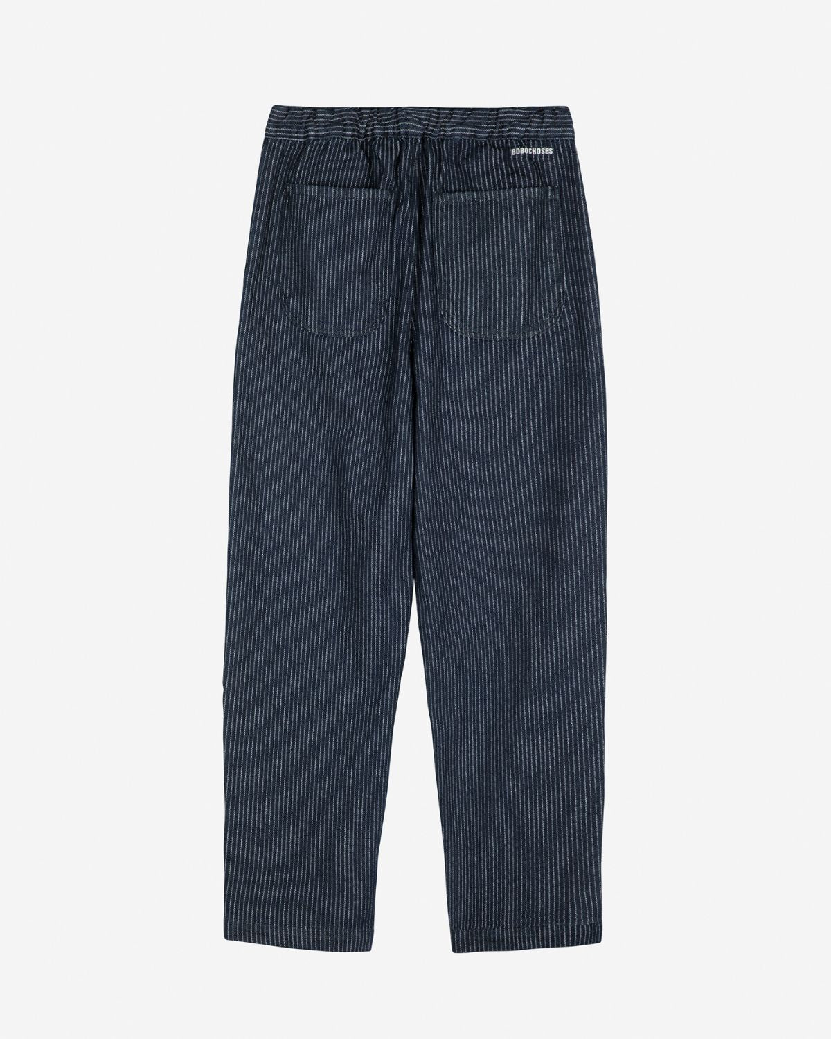Navy blue pants. Designed with cropped length, mid-rise, slouchy / cocoon, elasticated at the waist for a flexible fit and non stretchy fabric. Fits true to size, take your normal size.