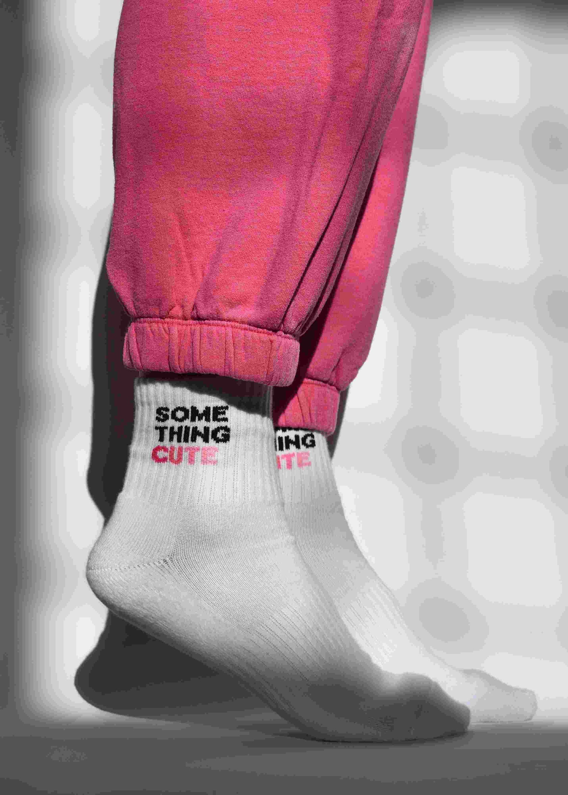 Your new favourite ribbed crew socks, with SOMETHING CUTE slogan detail, hit just above the ankle. With arch support and a cushioned heel and toe, Soxygen socks take comfort to another level. Elasticated stretch. One size fits all.