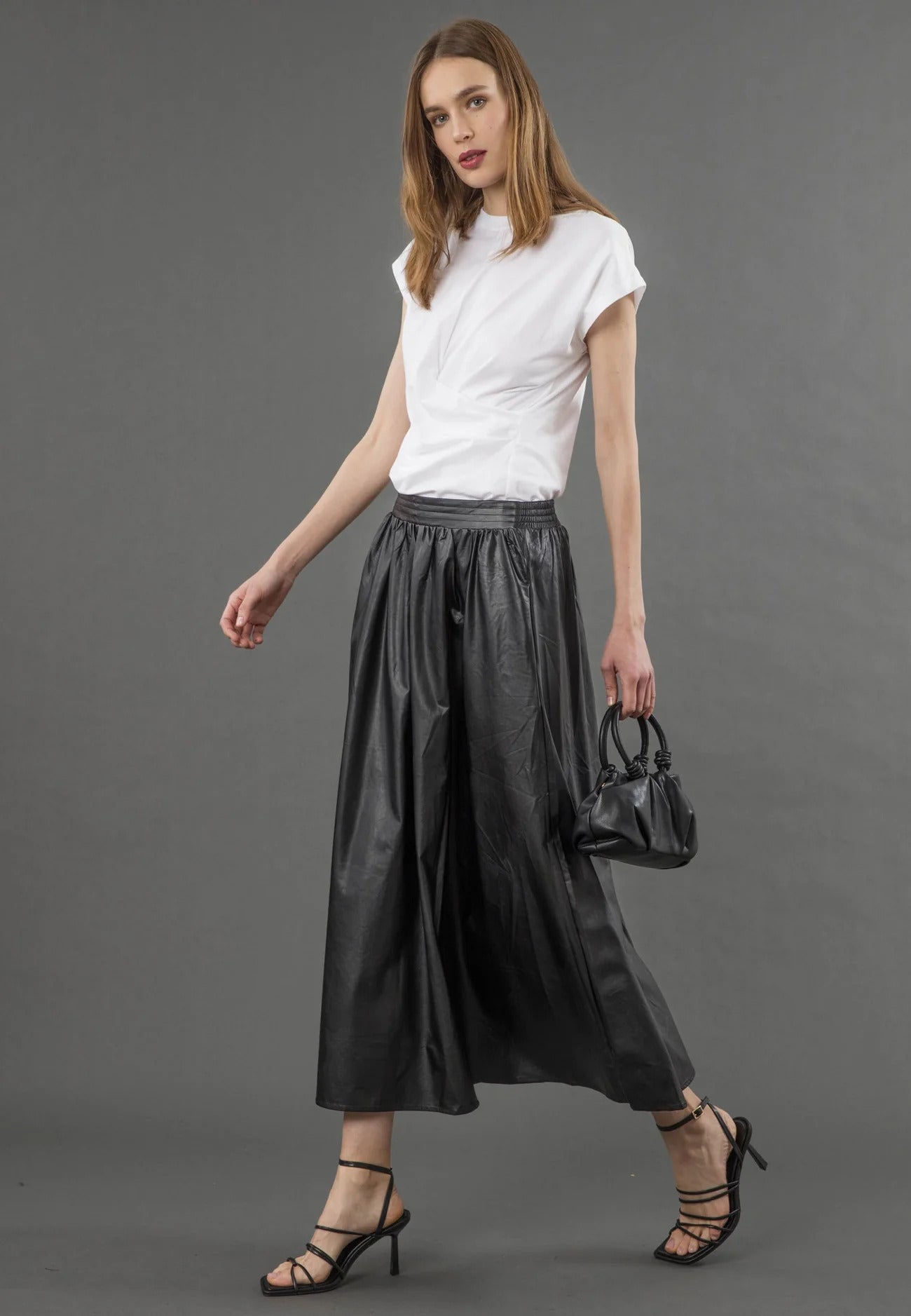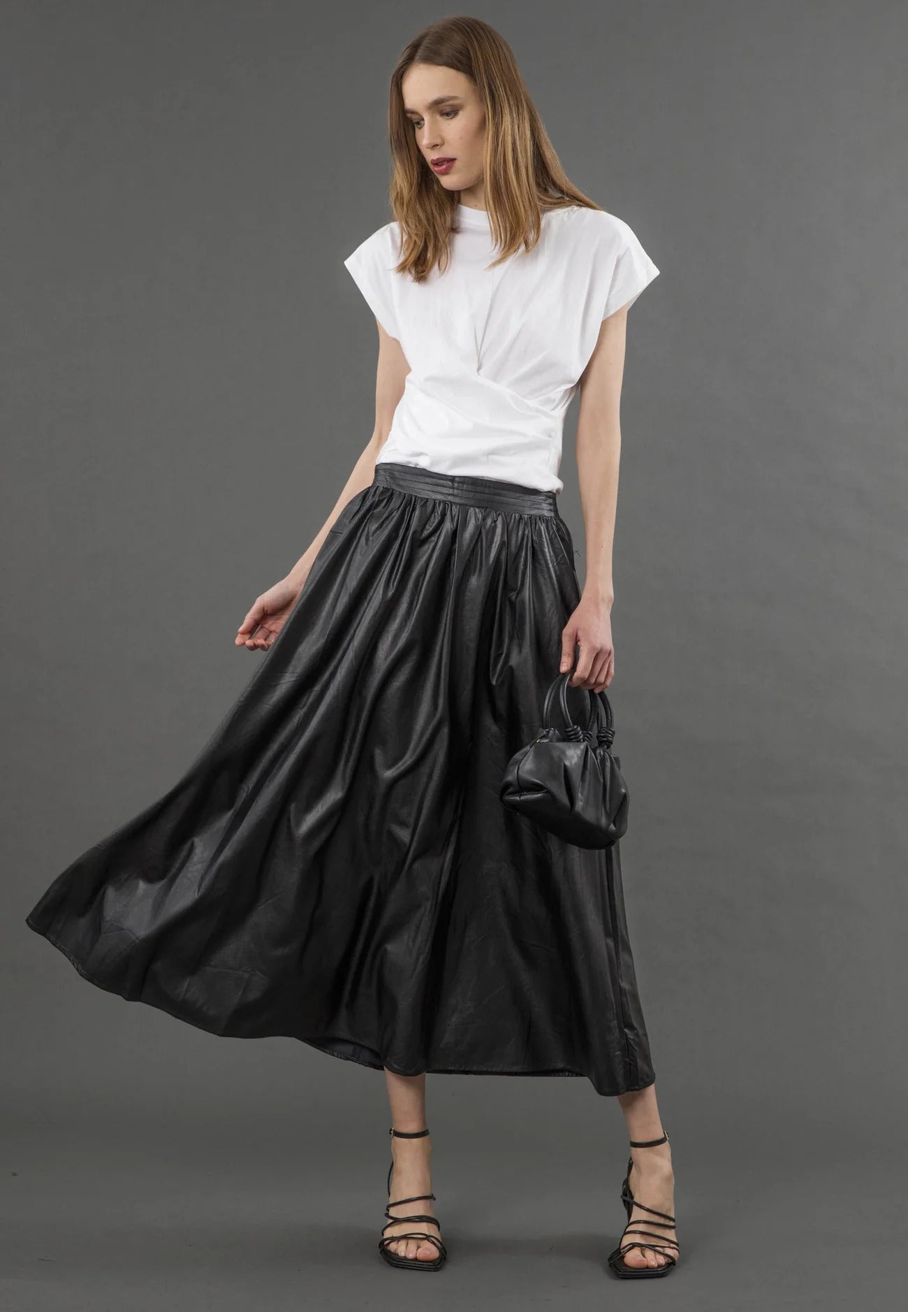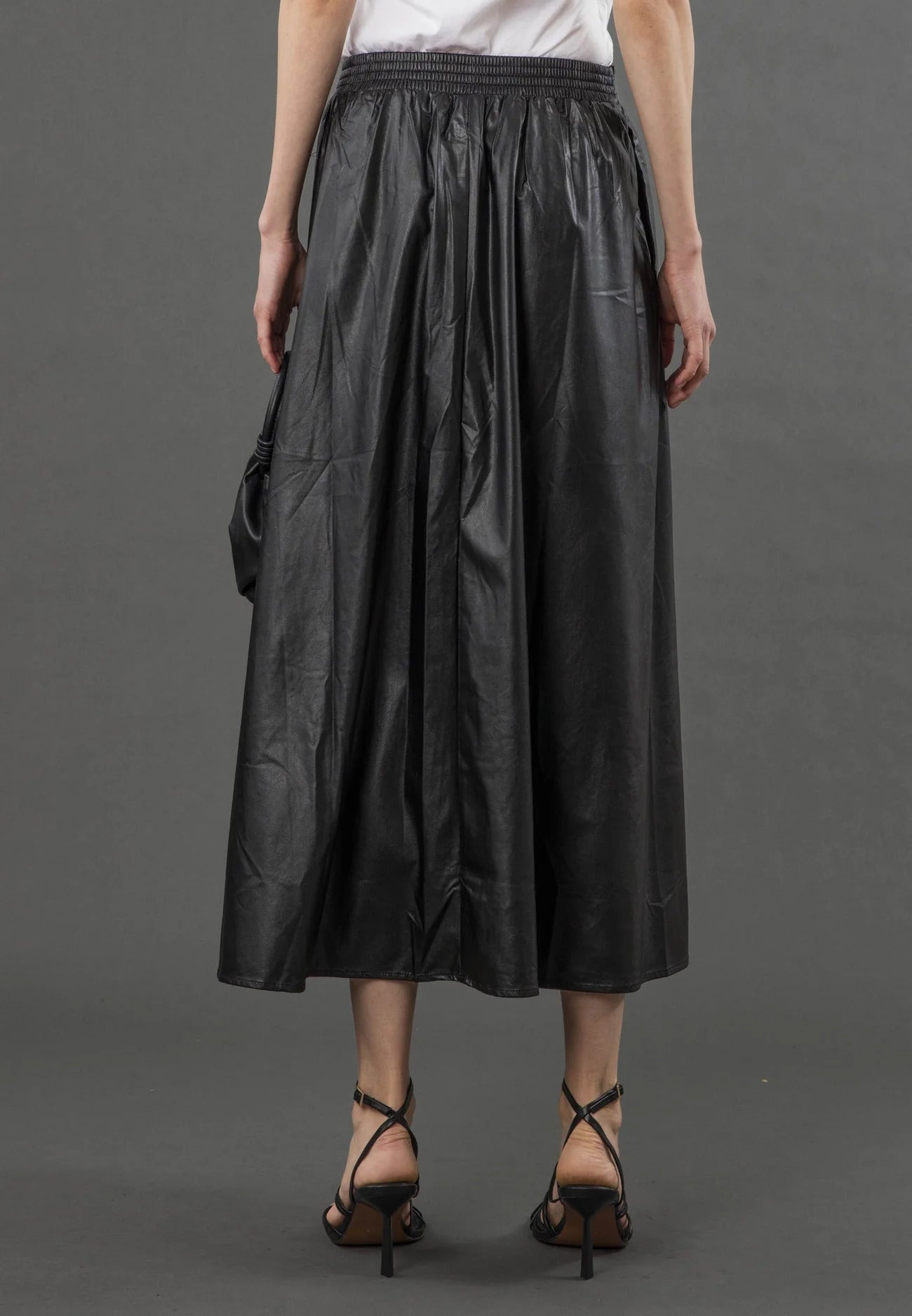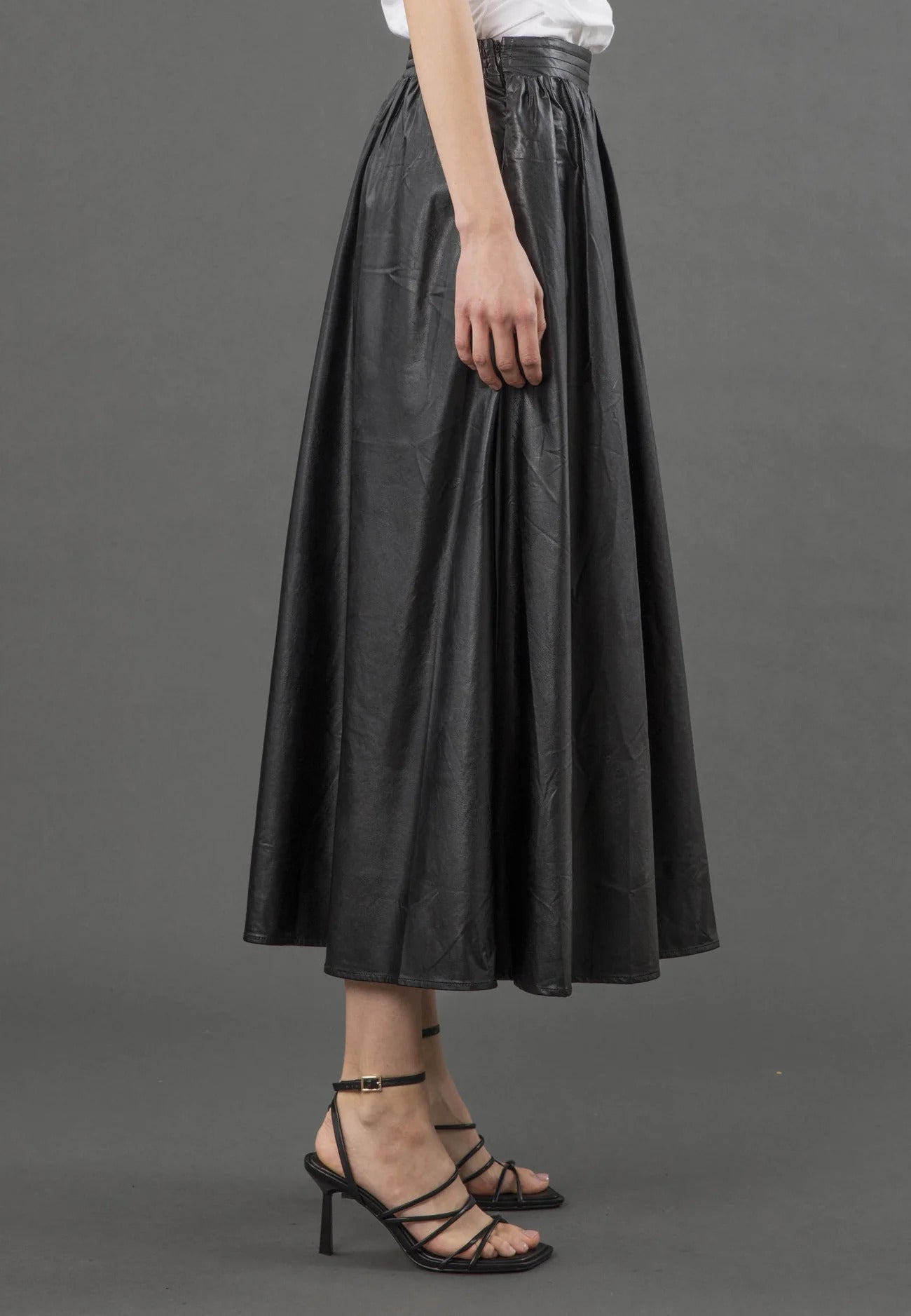The Sophie Skirt in black is a statement piece that combines elegance with practicality. Crafted from luxurious faux leather, this maxi skirt features a full, flowing silhouette and an elasticated back waist for a comfortable yet polished fit. Complete with handy pockets, it’s as functional as it is stylish. Perfect for both daytime looks and going-out ensembles, the Sophie Skirt is a versatile addition to your wardrobe, offering endless styling possibilities.