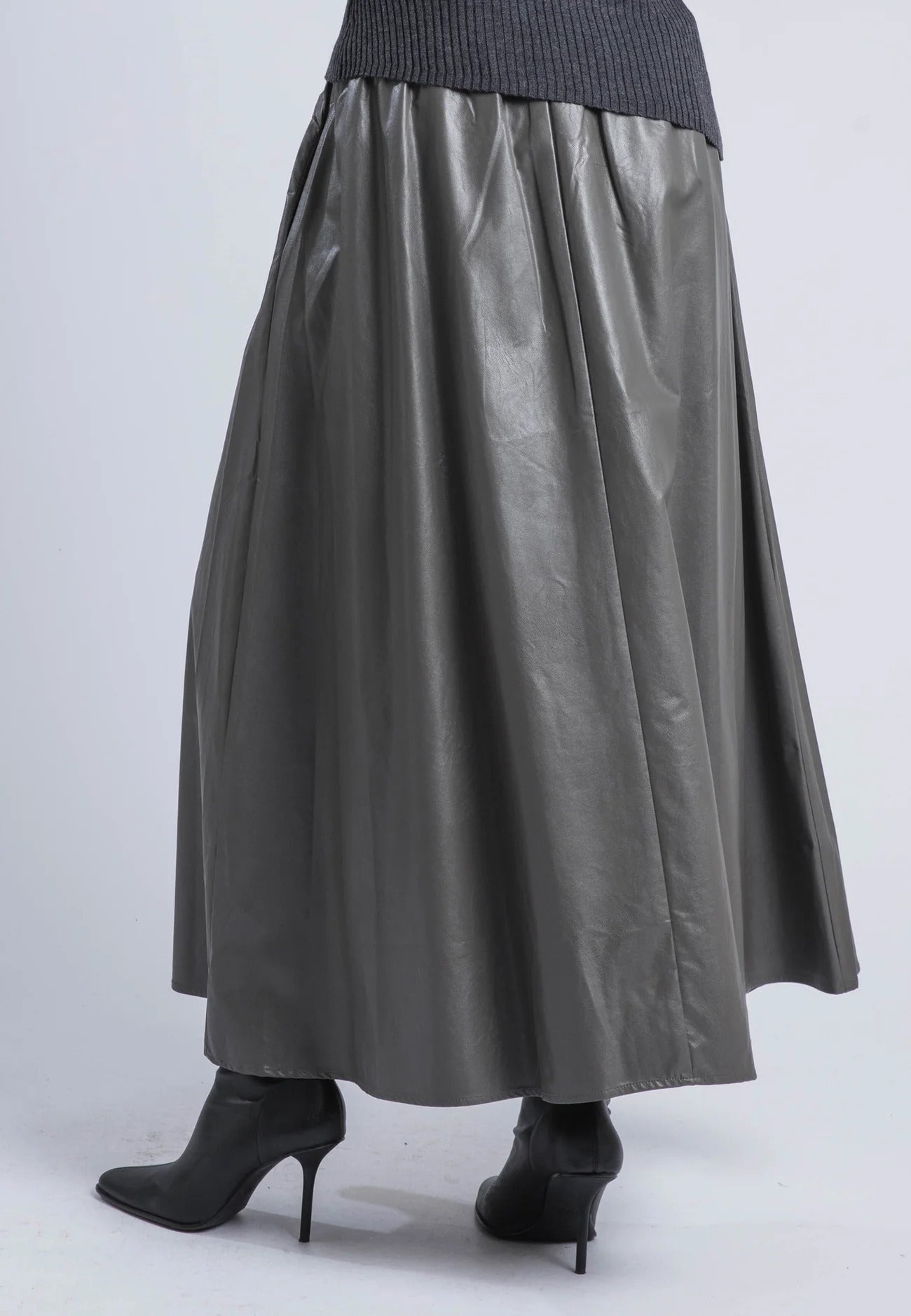 The Sophie Skirt in grey is a statement piece that combines elegance with practicality. Crafted from luxurious faux leather, this maxi skirt features a full, flowing silhouette and an elasticated back waist for a comfortable yet polished fit. Complete with handy pockets, it’s as functional as it is stylish. Perfect for both daytime looks and going-out ensembles, the Sophie Skirt is a versatile addition to your wardrobe, offering endless styling possibilities.