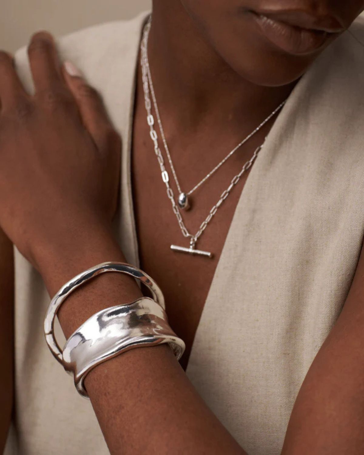 STATEMENT ORGANIC MOLTEN METAL CUFF SILVER