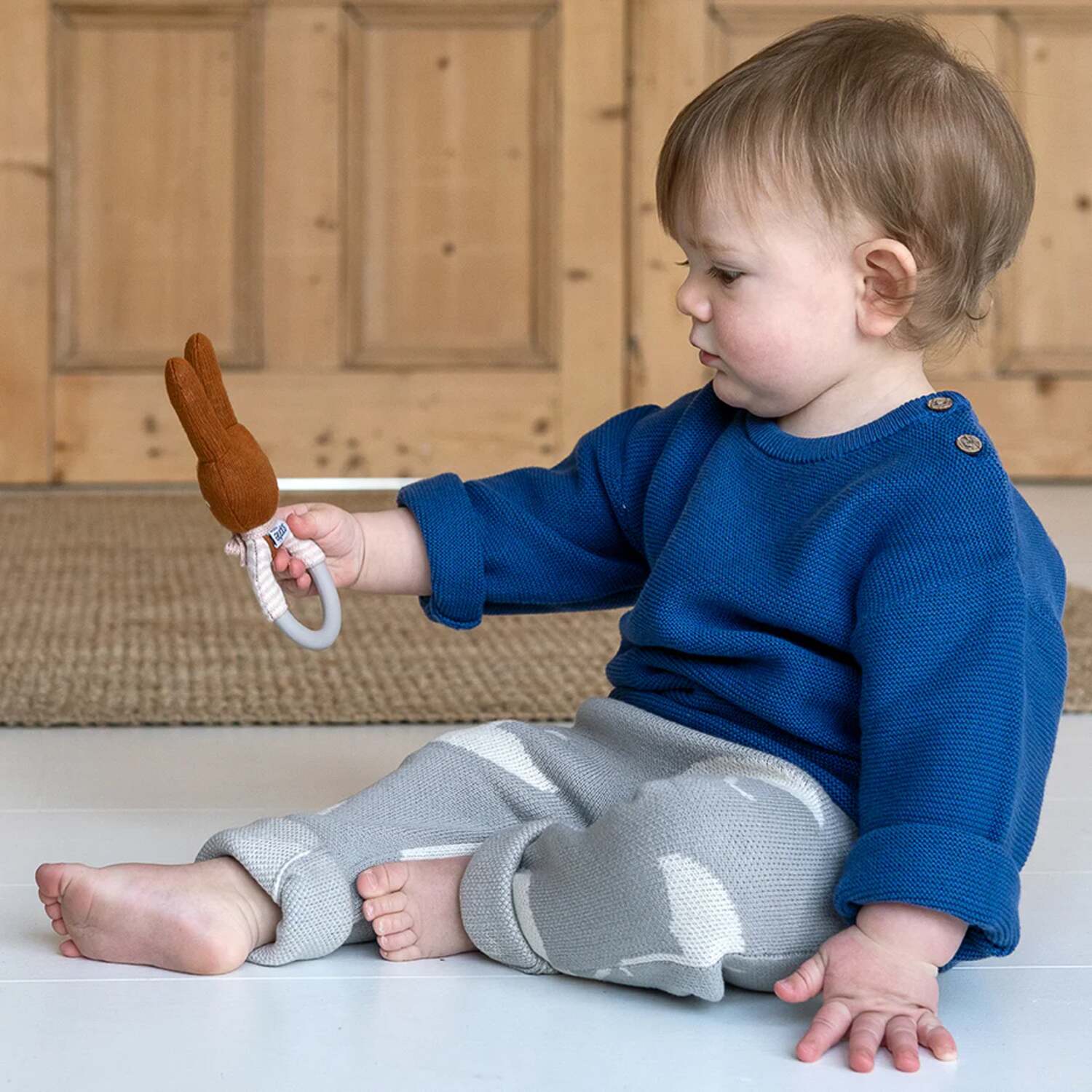 A gentle rattle in the rabbit's head makes this pliable food-grade silicone teething ring the perfect sensory accessory for any small baby.